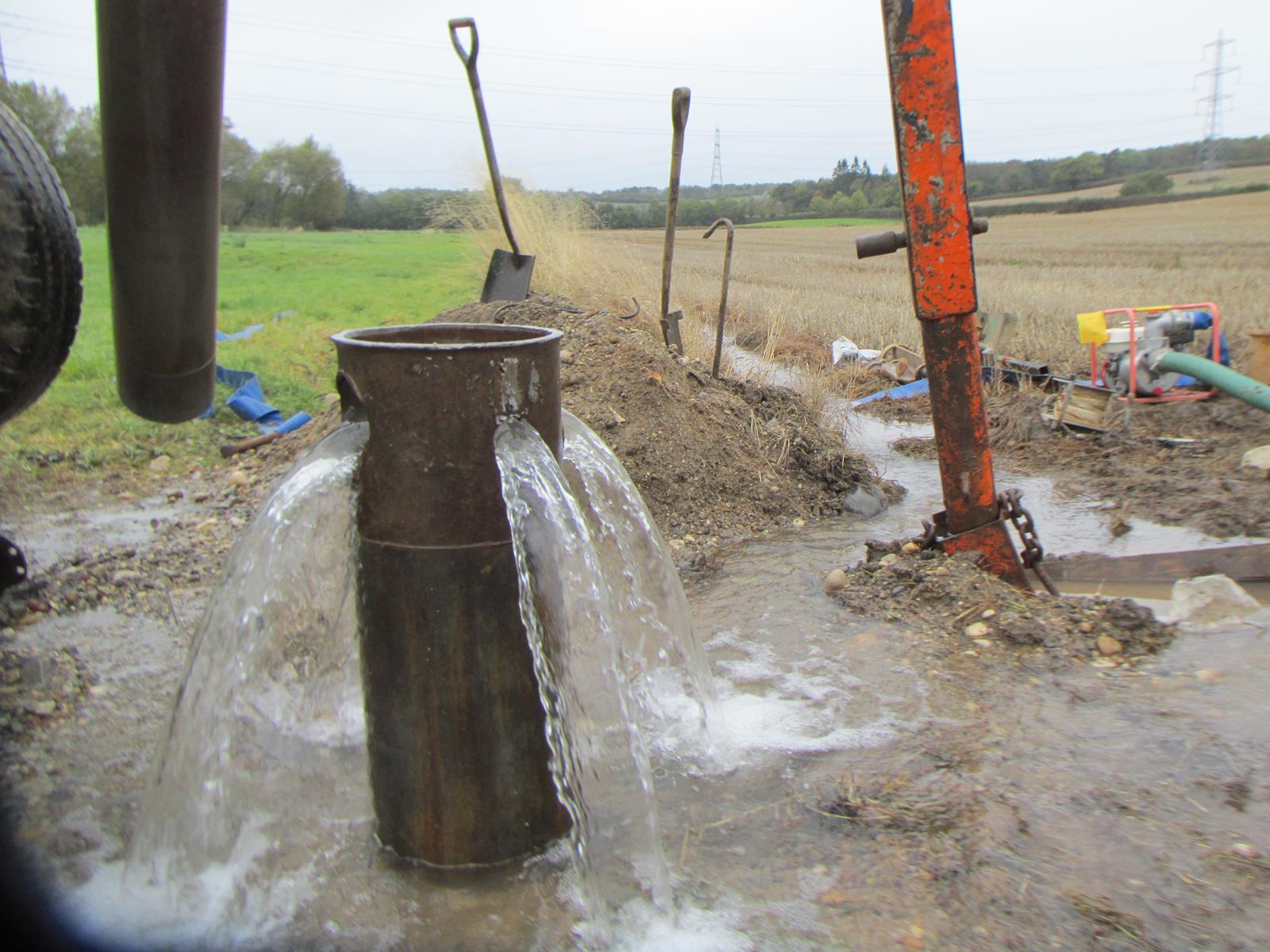 We started to drill a test pump well, and as we drilled deeper we unexpectedly found that it turned artesian, with flows of over 10 litres per second half a metre above ground level. The well was successful installed and sealed off.